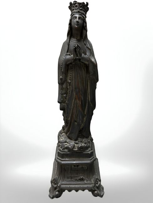 A French patinated metal figure of Our Lady of Lourdes, circa 1900, height 28.5 cm.