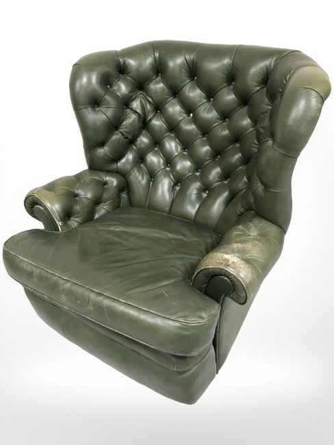 A 20th century Chesterfield style olive leather wingback armchair, width 99 cm