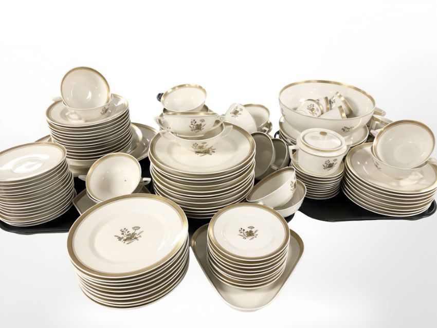 Approximately one hundred and twenty seven pieces of Royal Copenhagen gilt rimmed tea and dinner wares.