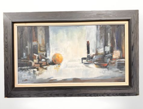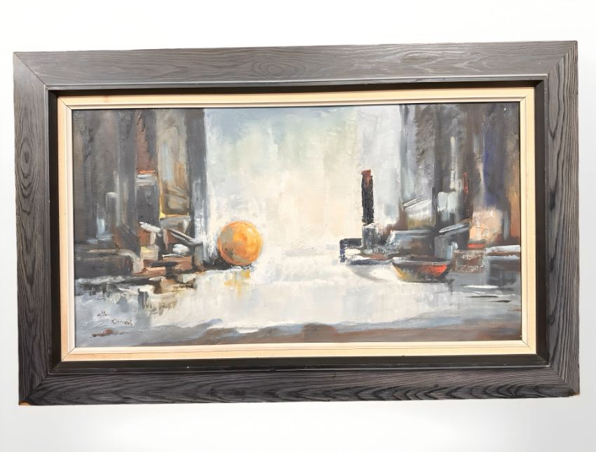 Danish School : Still life with an orange, oil on canvas, 74 cm x 39 cm.