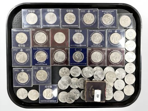 A 1951 Festival of Britain five shilling coin, together with a quantity of commemorative Crowns, Royal Wedding Crowns etc