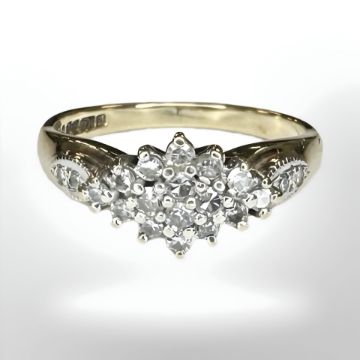 A 9ct gold diamond cluster ring, the stated total diamond weight 0.25 carat, size M