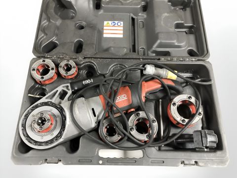 A Ridgid 690-1 handheld pipe threading tool, boxed.