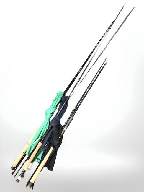 A Shakespeare Ugly Stik Lite Spin 2.7m casting rod, a Greys G-series multi 10' two piece rod and a Hardy Graphite 10.5' two piece rod, all with protective slips