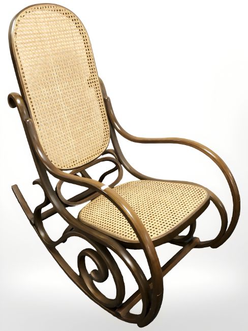 A bentwood and cane rocking chair.