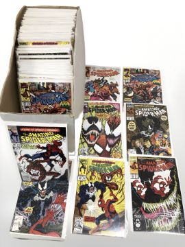 A large quantity of Marvel The Amazing Spiderman comics, earliest with 60¢ covers, (1 box, multiple duplicates)