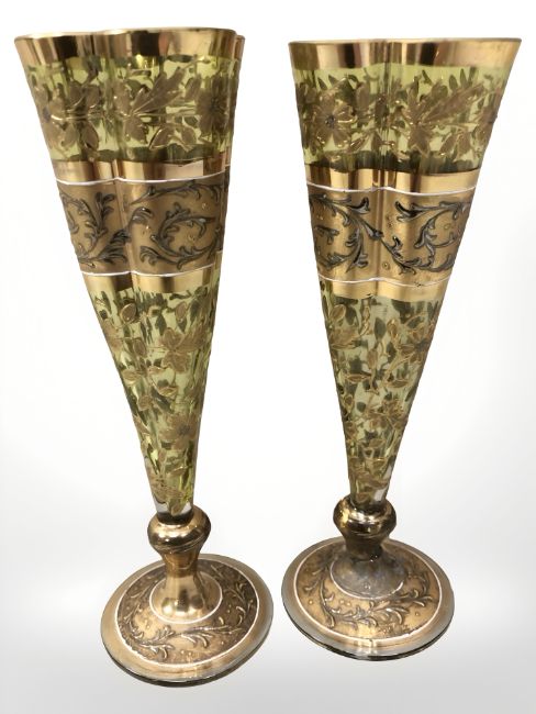A pair of Victorian Moser glass quatrefoil vases, height 14.5 cm (1 restored)