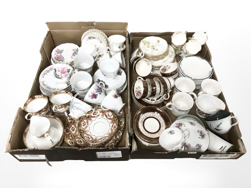 Several part tea sets including Royal Albert, Burlsem Crownford, Royal Vale etc (2 boxes)