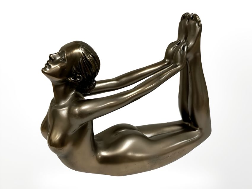 An Art Deco style bronzed-resin figure of a nudy lady after Ed Van Rosmalen, length 13.5cm