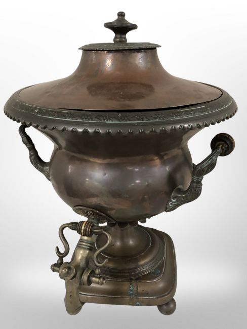 A Victorian copper on pewter samovar, height 41 cm