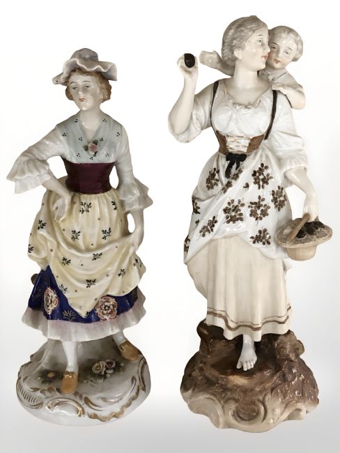 Two 20th century German porcelain figures in the style of Meissen, depicting ladies, tallest 24 cm.