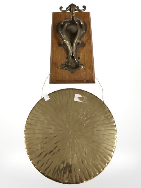 A brass gong on bracket.
