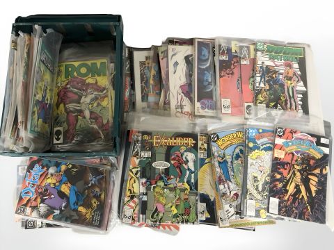 D.C and Marvel comics including Wonder Woman, Rom Knight, The Wanderers, Excalibur, etc. (1 box)