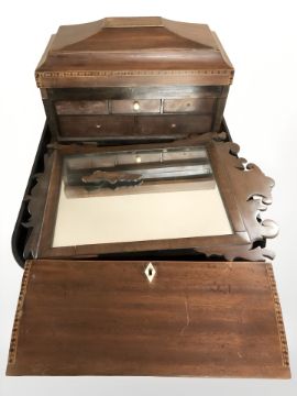 A small Chippendale style mirror and a parquetry caddy.