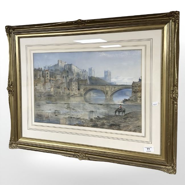 Clement Burlison (1815-1899) : Durham Cathedral and Castle from the River Wear, watercolour, 48 cm x 32 cm.