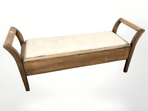 A mahogany storage duet stool, width 103 cm
