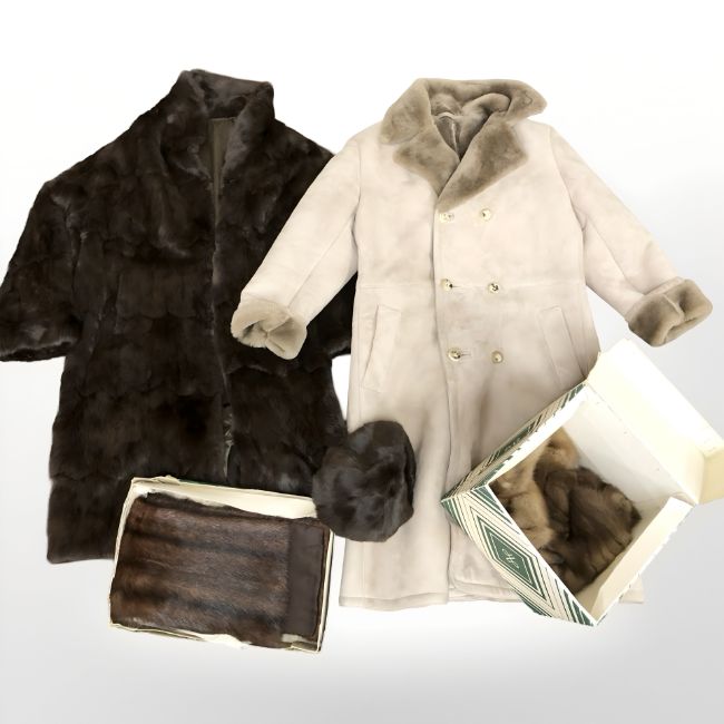 A lady's mink fur coat, hat, stoles, further coat with synthetic fur lining, etc. (2 boxes)