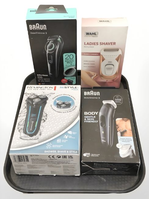 Four boxed lady's/gents shavers including Remington, Braun and Wahl.
