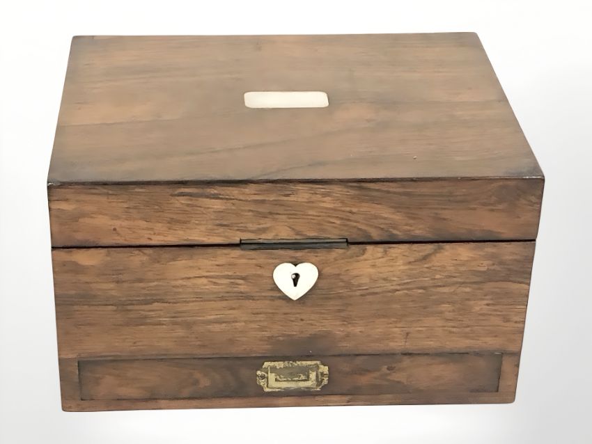 A Victorian rosewood vanity box, width 28 cm.