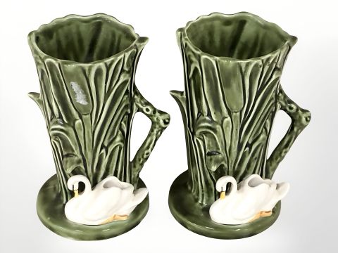A pair of Silvac spill vases decorated with swans, height 15 cm.