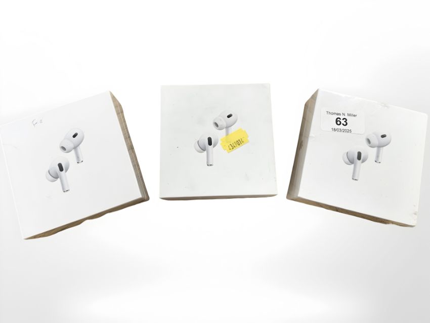 Two factory sealed Apple AirPods Pro and a further part box. (3)