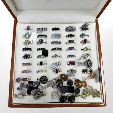 A group of sterling silver and white metal jewellery including approximately 40 dress rings and earrings