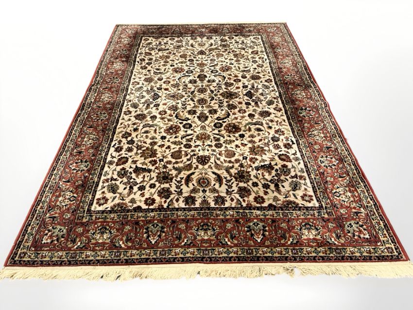 A machine-made carpet of Isphahan design, 297cm by 200cm