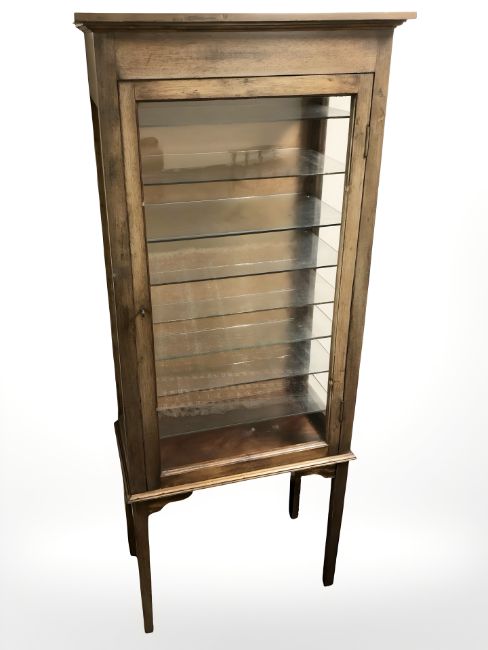 An early 20th century mahogany display cabinet with internal glass shelves, 55 cm x 30 cm x 135 cm