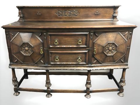 An Edwardian carved oak bow-front sideboard, 153 cm x 55 cm x 117 cm