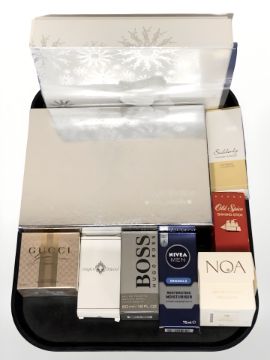 Assorted cosmetics and fragrances including Gucci, Boss, Old Spice etc (mostly opened)