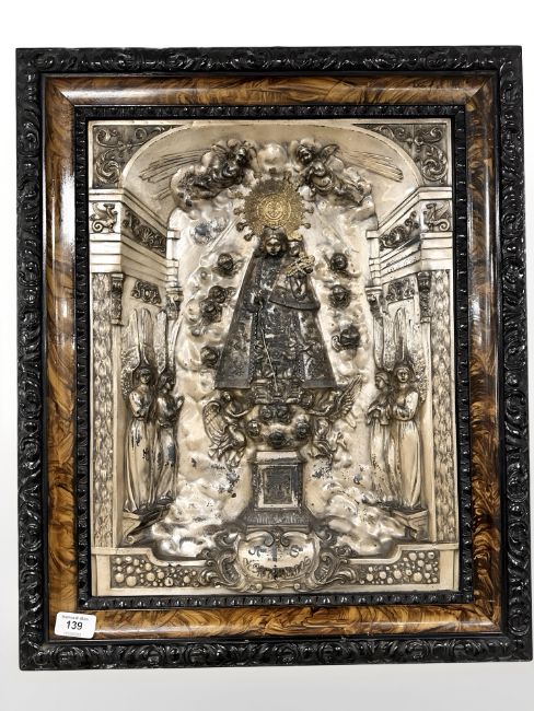 A continental metal relief work panel depicting angels, overall 50 cm x 60 cm.