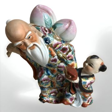 A Chinese famille rose porcelain longevity figure, height 23 cm.