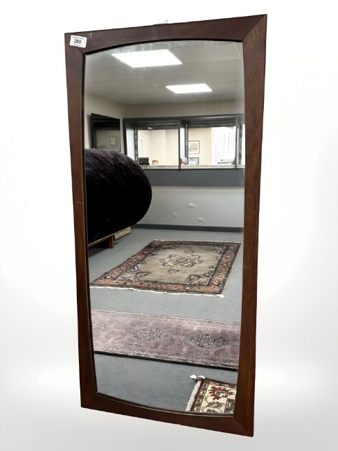 A mid century teak framed mirror, 43 cm x 88 cm.