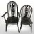 A set of four Danish blonde oak dining chairs, plus two ebonised wheelback chairs. (6)