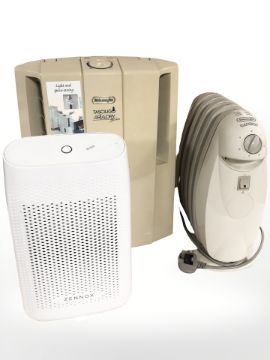 A Delonghi dehumidifier, heater and a Zennox dehumidifier