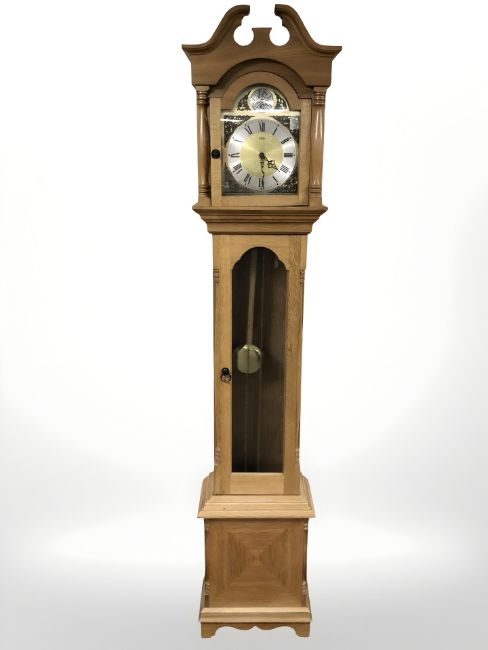 A Brixon Tempus Fugit longcase clock with pendulum and weights, height 208 cm