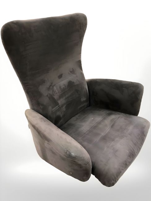 A Scandinavian swivel lounge chair in suede fabric on aluminium support, width 90 cm.