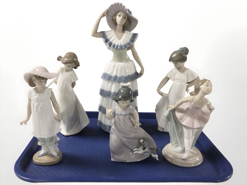 Six assorted Nao figures, tallest 31 cm.