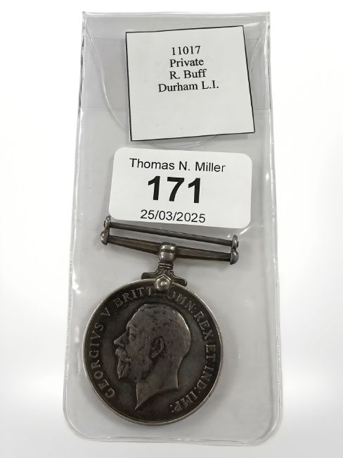 A WWI Victory Medal named to 11017 Pte. R Buff Durham Light Infantry