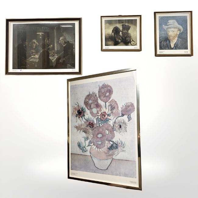 After Vincent Van Gogh : The Potato Eaters, colour print, 68 cm x 48 cm, together with three further prints after the same artist. (4)