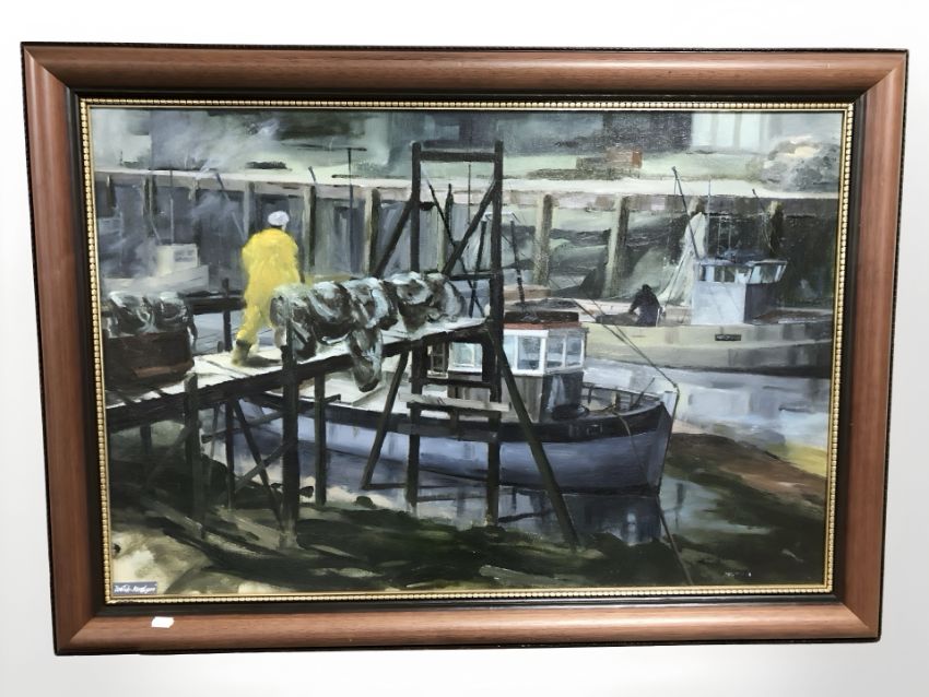 Tom Dack : Low Tide, Kings Lynn, oil on board, 60 cm x 90 cm.