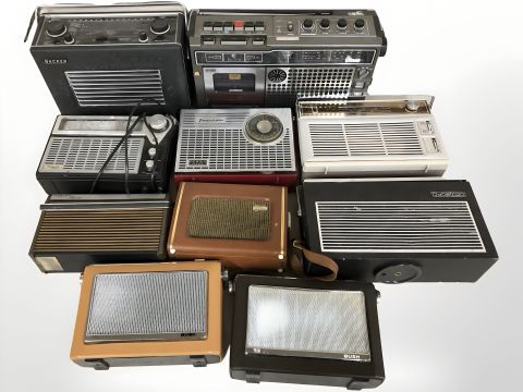 Ten various vintage radios including Bush, Dynatron, Fidelity, etc.