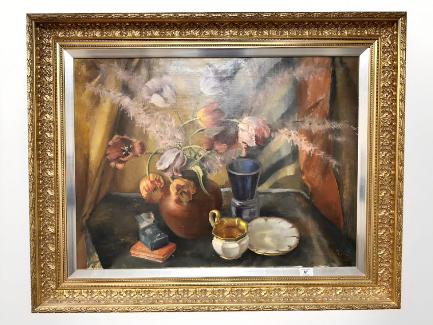 Hollo Nelly : A still life with tulips, oil on canvas, 79 cm x 59 cm.