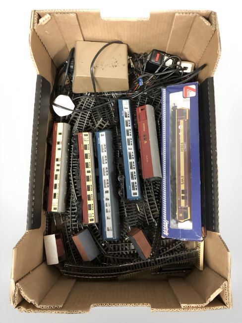A group of OO gauge die cast rolling stock including Lima, Triang, lengths of track, control unit, etc. (1 box)