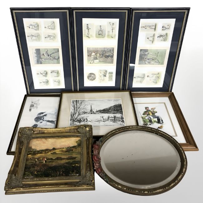 A group of pictures and prints, a Barbola mirror. (1 box)