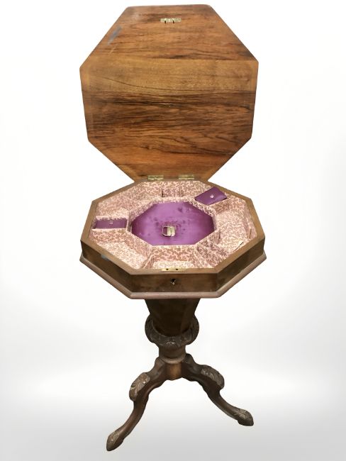 A walnut octagonal tripod work table, width 44 cm