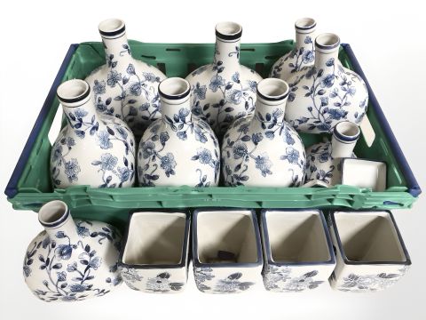 A collection of modern Chinese blue and white porcelain vases. (1 box)