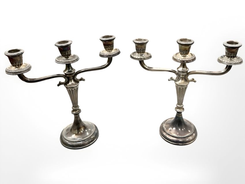 A pair of Italian loaded silver three-sconce table candelabra, stamped 800, height 25.5cm.
