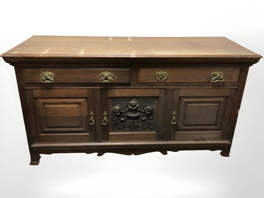 An Arts & Crafts oak sideboard, 184 cm x 61 cm x 98 cm high