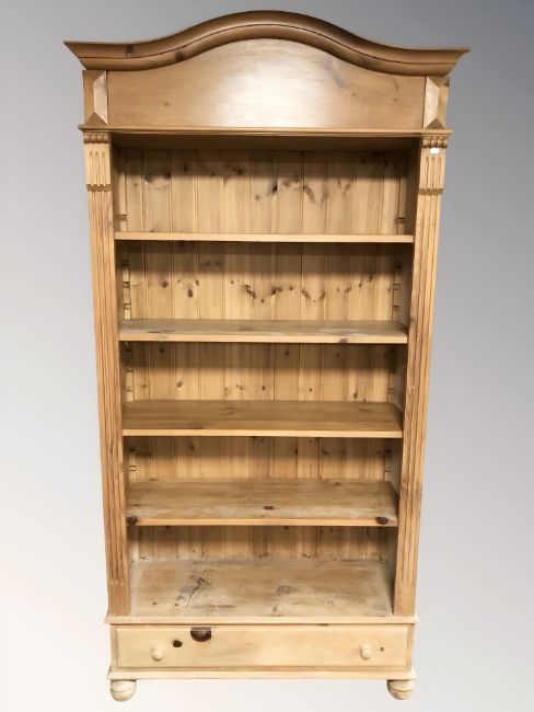 A contemporary pine open bookcase, 110 cm W x 45 cm D x 212 cm H.